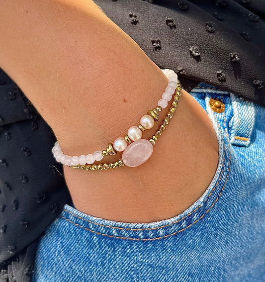 Bracelet Quartz rose et Hématite PAMINA